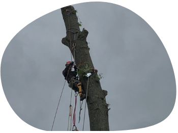 高所作業車やツリークライミングを利用して支障木木などを伐採する作業。