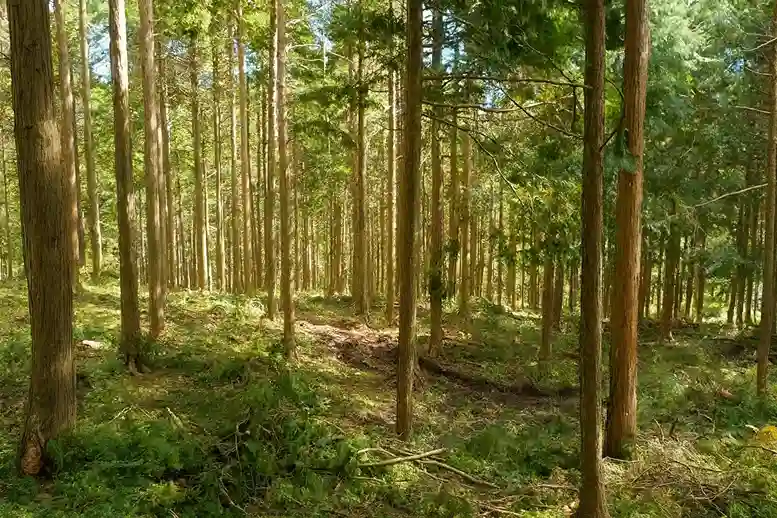 密集しすぎている⽊々を間引きして伐採することで、残った⽊々の成⻑環境を改善します。